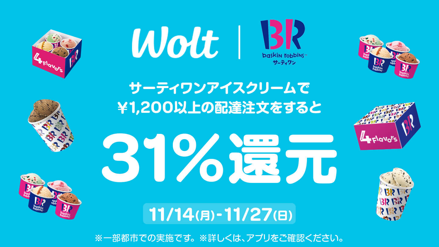 初めてWolt(ウォルト)をご利用いただくお客様の4回の配達注文が合計 4,000割引(¥1,000×4)になります。プロモコードの登録期限は2024年12月31日まで、登録後は30日間ご利用いただけます。※以下のボタンからの注文のみ適用になります!