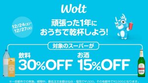 初めてWolt(ウォルト)をご利用いただくお客様の4回の配達注文が合計 4,000割引(¥1,000×4)になります。プロモコードの登録期限は2024年12月31日まで、登録後は30日間ご利用いただけます。※以下のボタンからの注文のみ適用になります!
