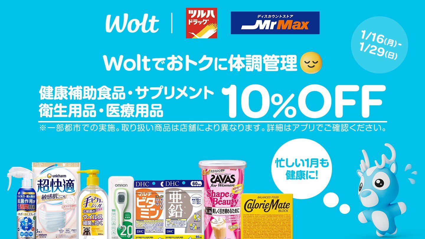 初めてWolt(ウォルト)をご利用いただくお客様の4回の配達注文が合計 4,000割引(¥1,000×4)になります。プロモコードの登録期限は2024年12月31日まで、登録後は30日間ご利用いただけます。※以下のボタンからの注文のみ適用になります!