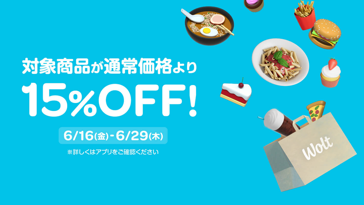 初めてWolt(ウォルト)をご利用いただくお客様の4回の配達注文が合計 4,000割引(¥1,000×4)になります。プロモコードの登録期限は2024年12月31日まで、登録後は30日間ご利用いただけます。※以下のボタンからの注文のみ適用になります!